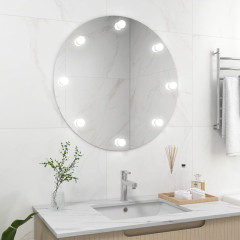Stensko ogledalo brez okvirja z LED lučkami okroglo steklo