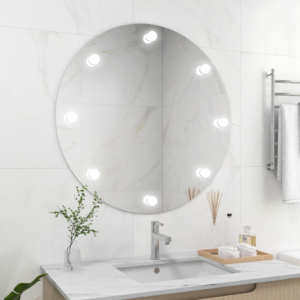 Stensko ogledalo brez okvirja z LED lučkami okroglo steklo