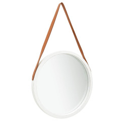 Stensko ogledalo s pasom 50 cm belo
