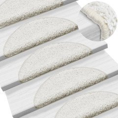 Stopniščne preproge 15 kosov 56x17x3 cm bele polkrožne