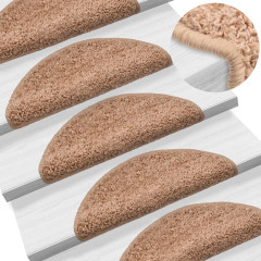 Stopniščne preproge 15 kosov 56x17x3 cm bež polkrožne