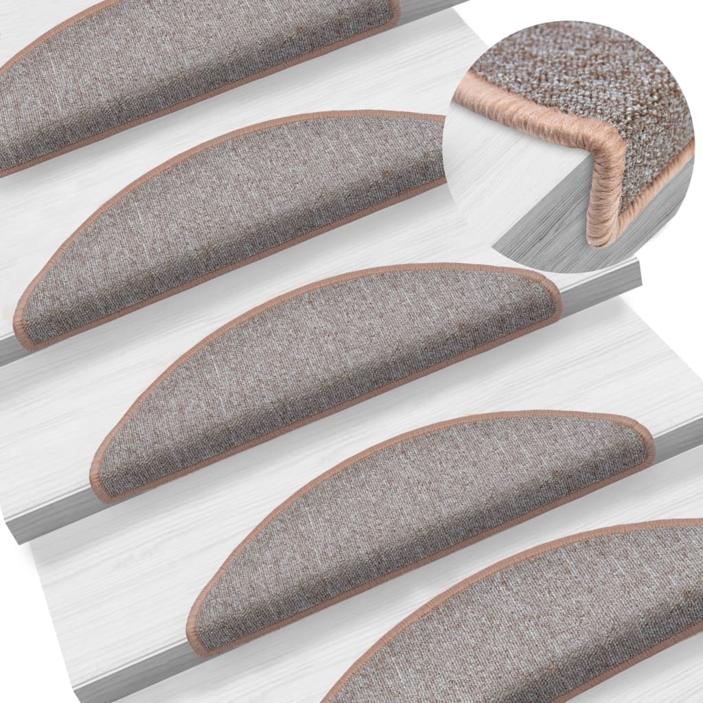 Stopniščne preproge 15 kosov 56x17x3 cm svetlo rjave polkrožne