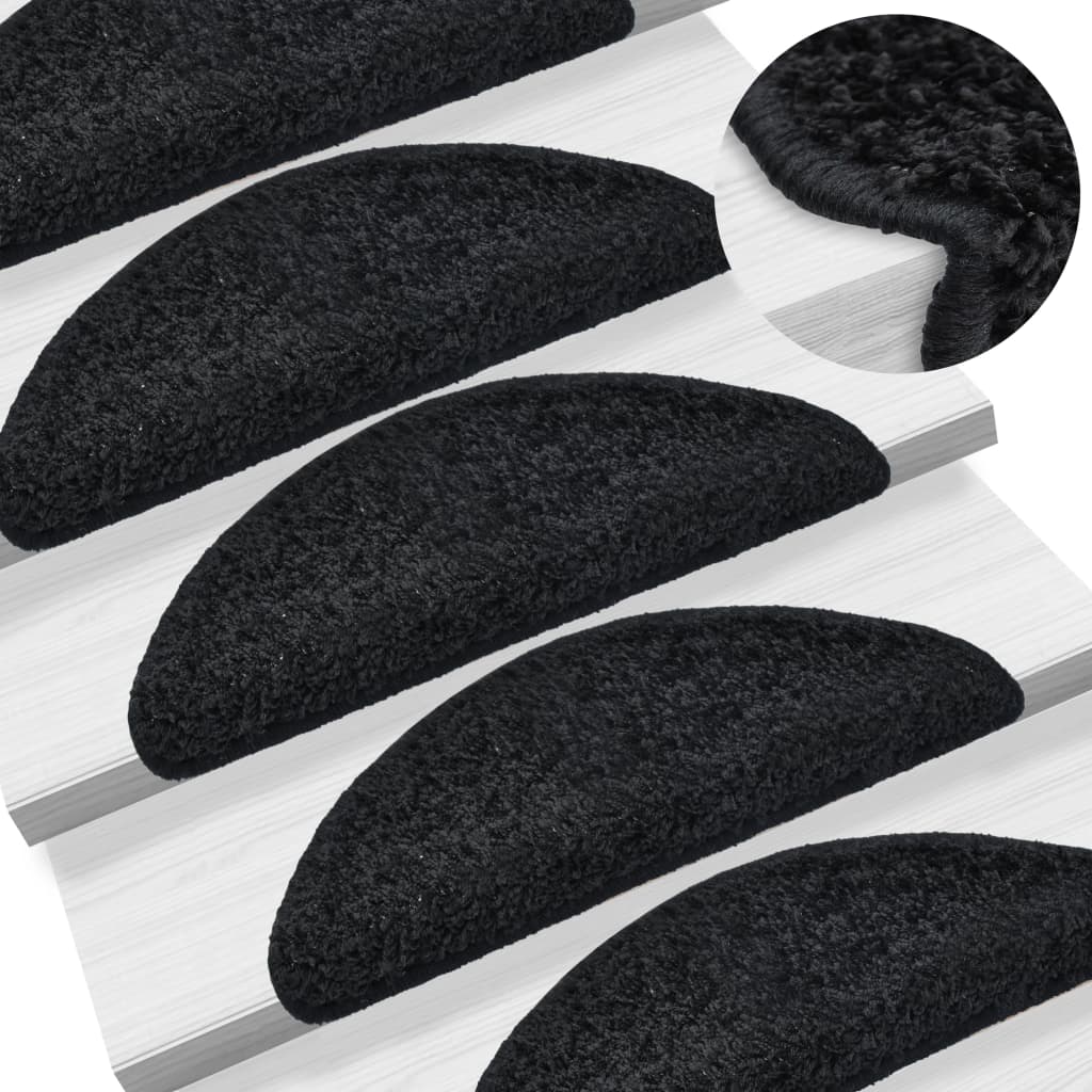 Stopniščne preproge 15 kosov 65x21x4 cm črne polkrožne velike