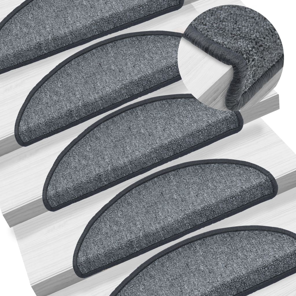 Stopniščne preproge 15 kosov 65x24x4 cm temno sive polkrožne velike