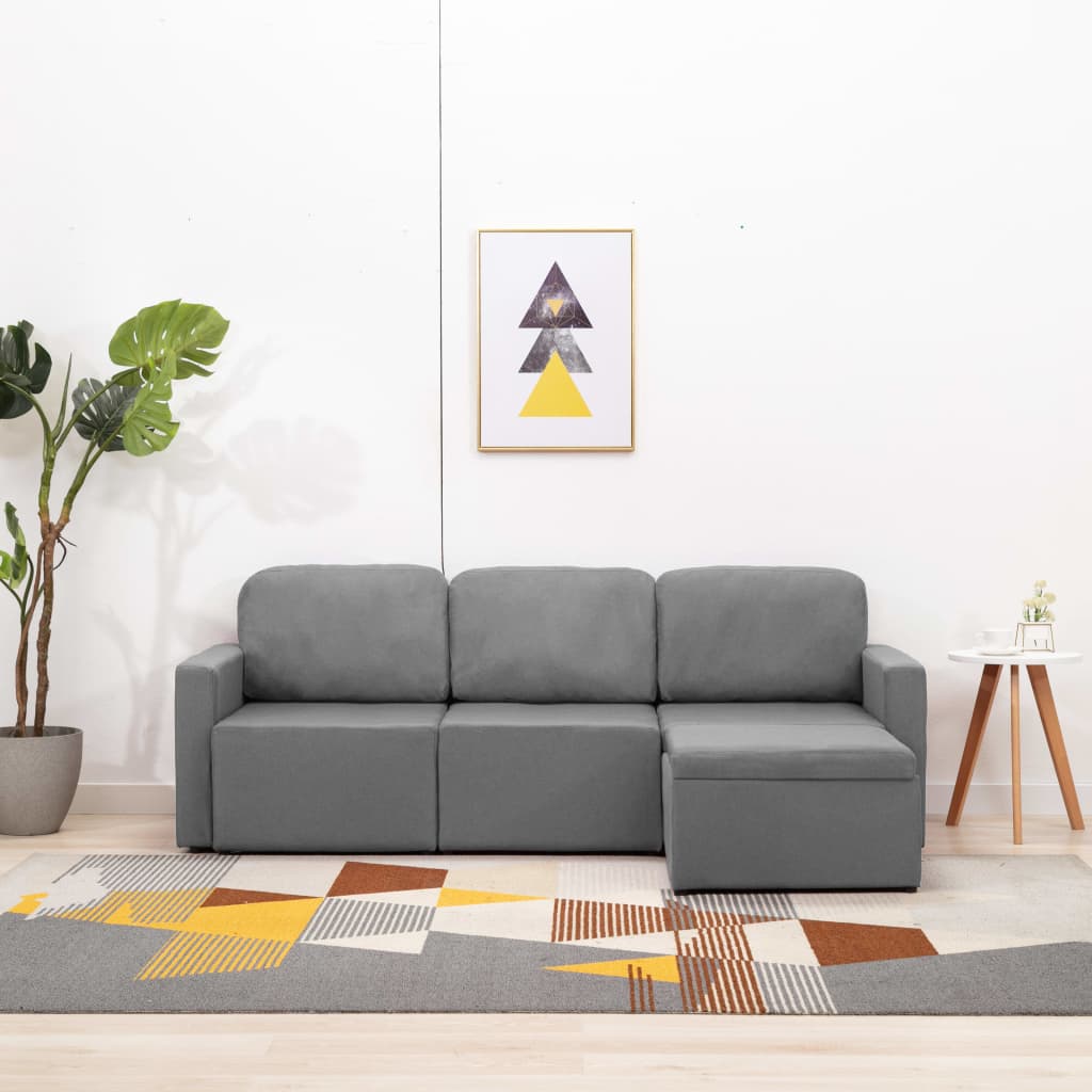 Trosed modularni kavč z ležiščem svetlo siv iz blaga