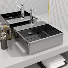 Umivalnik z odprtino za odtekanje 41x41x15 cm keramičen srebrn