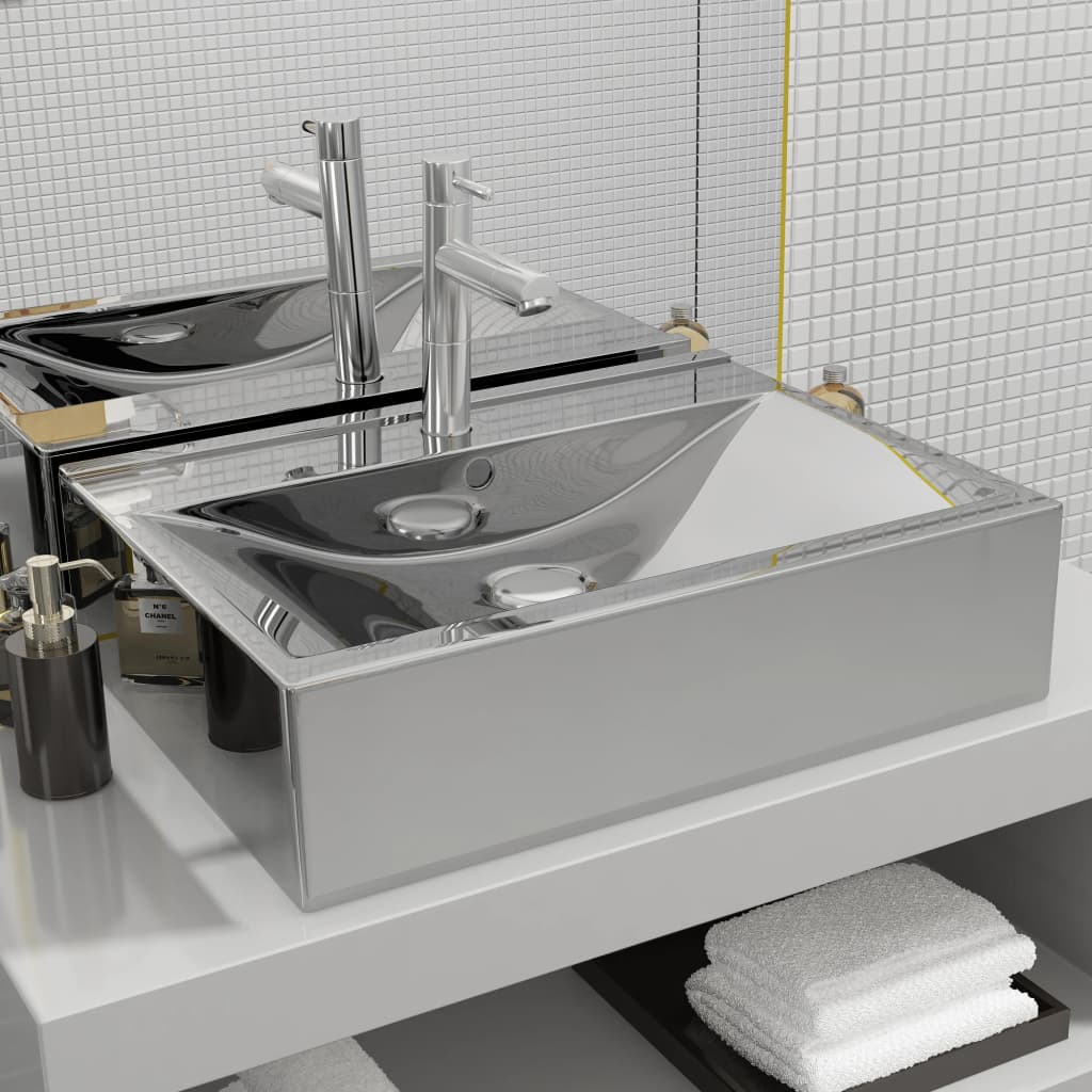 Umivalnik z odprtino za odtekanje 60x46x16 cm keramičen srebrn