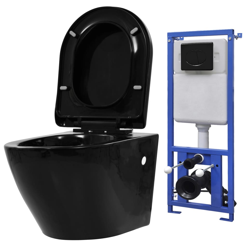 Viseča WC školjka z vgradnim kotličkom keramika črna