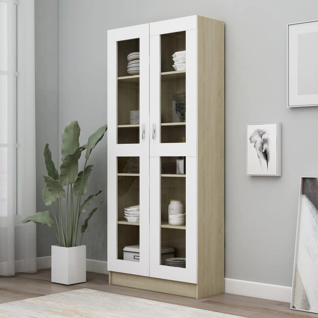 Vitrina bela in sonoma hrast 82,5x30,5x185,5 cm iverna plošča