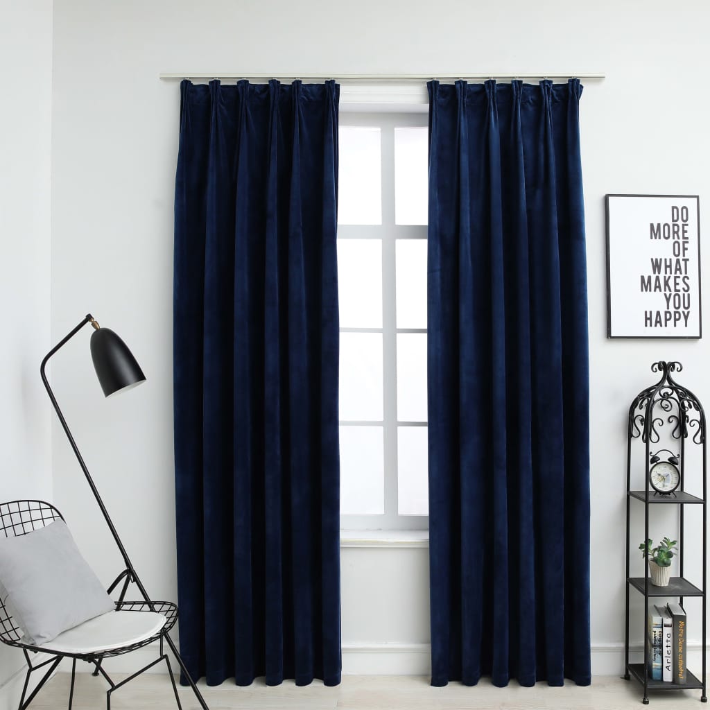 Zatemnitvene zavese 2 kosa z obešali žametne modre 140x245 cm