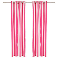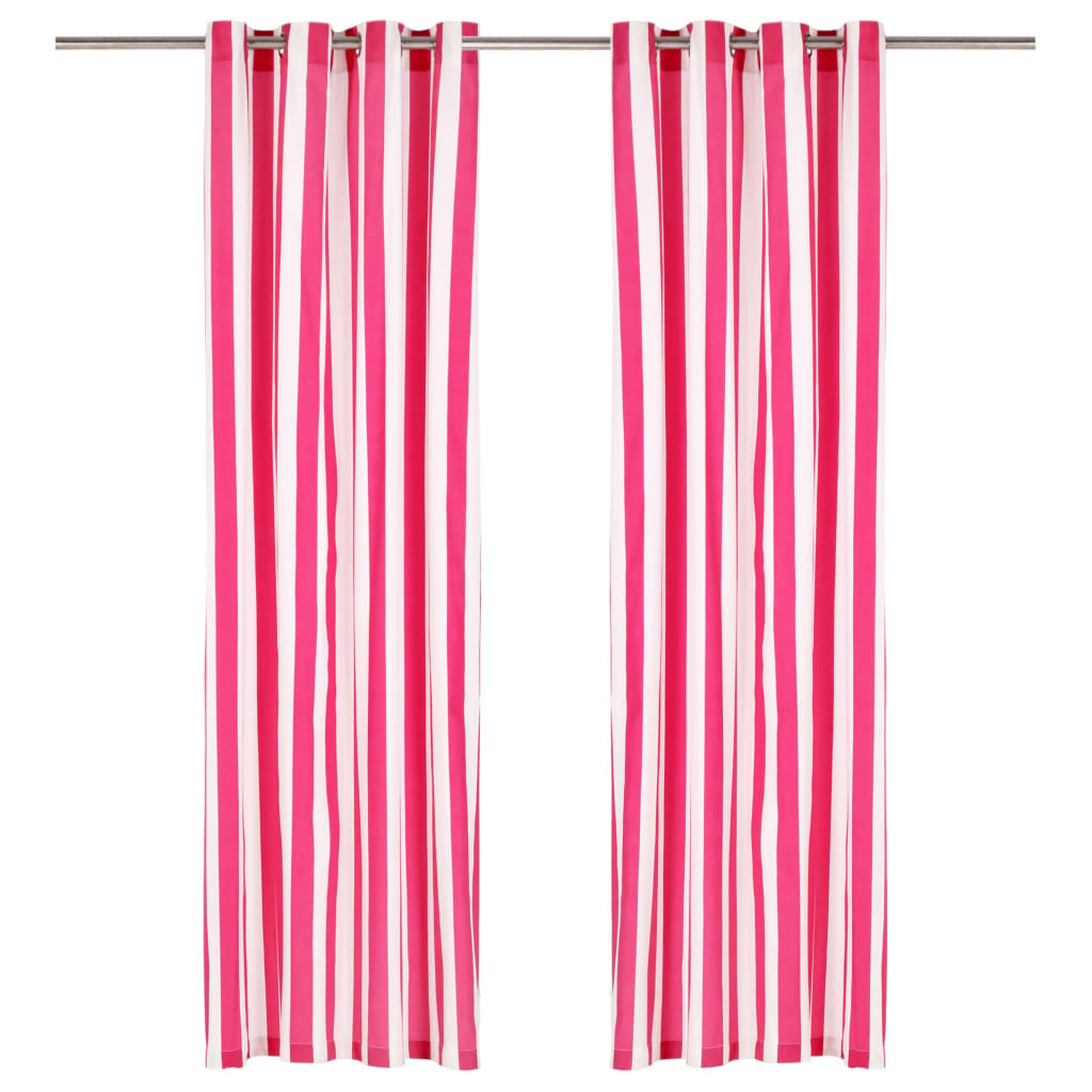 Zavese s kovinskimi obročki 2 kosa blago 140x175 cm roza črte