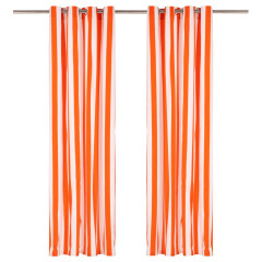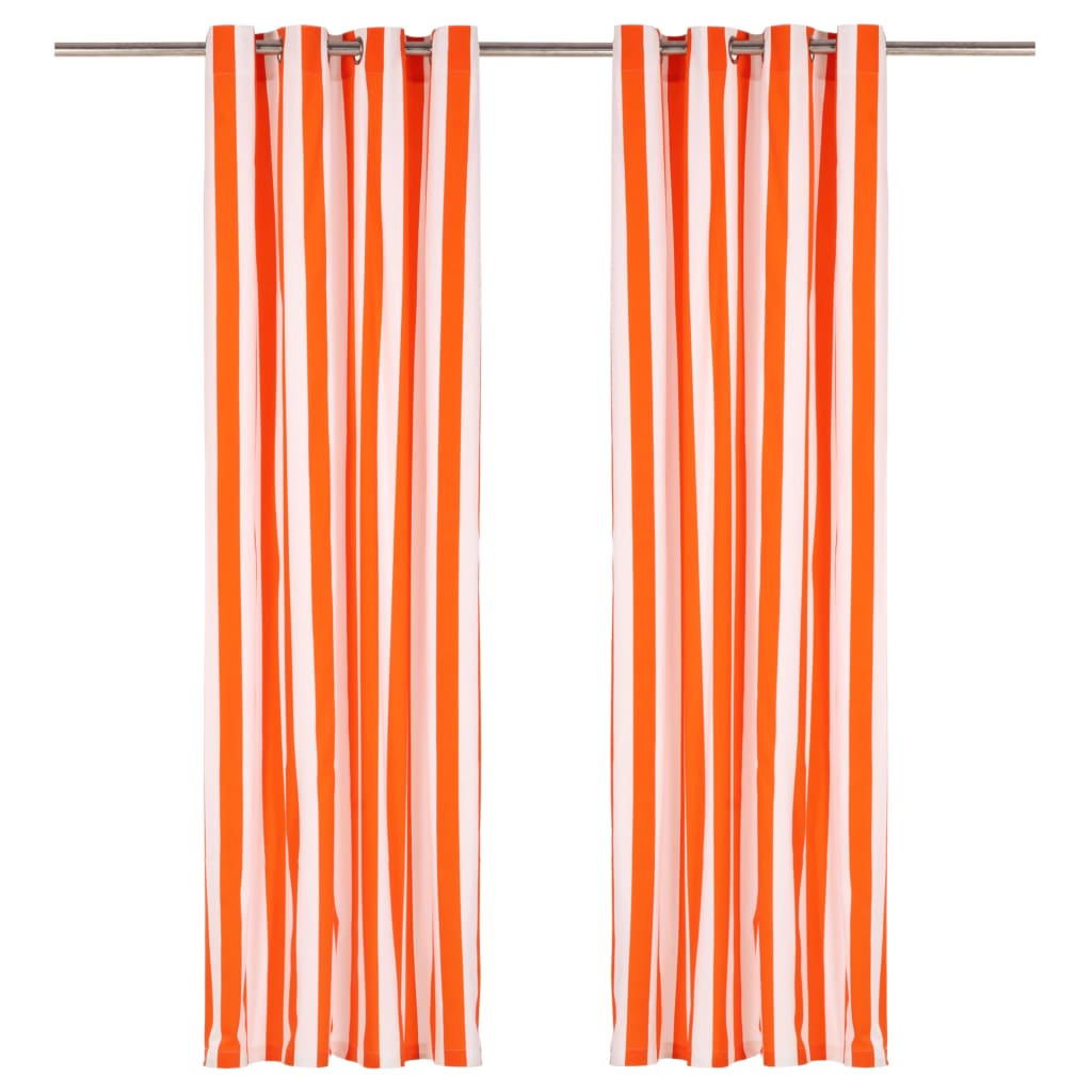 Zavese s kovinskimi obročki 2 kosa blago 140x245cm oranžne črte