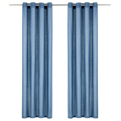 Zavese s kovinskimi obročki 2 kosa bombaž 140x225 cm modre