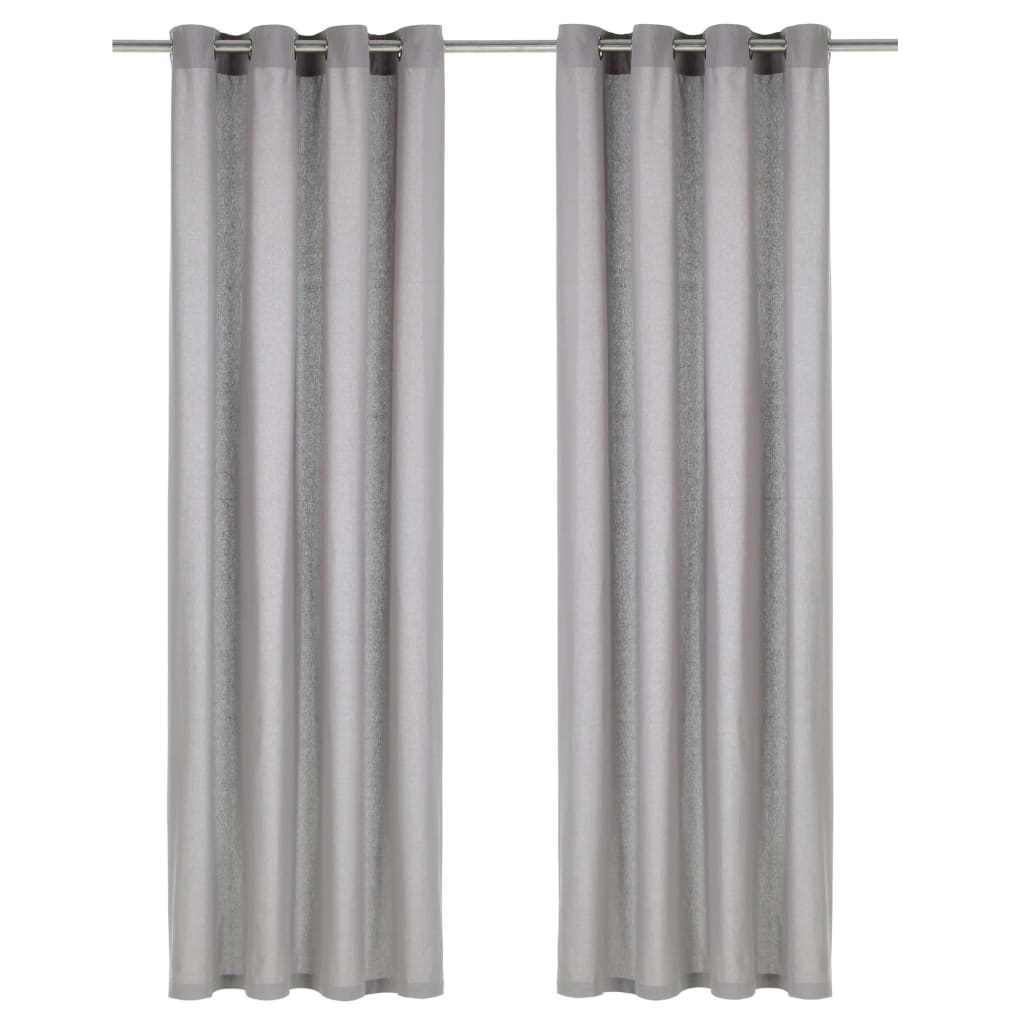 Zavese s kovinskimi obročki 2 kosa bombaž 140x245 cm sive