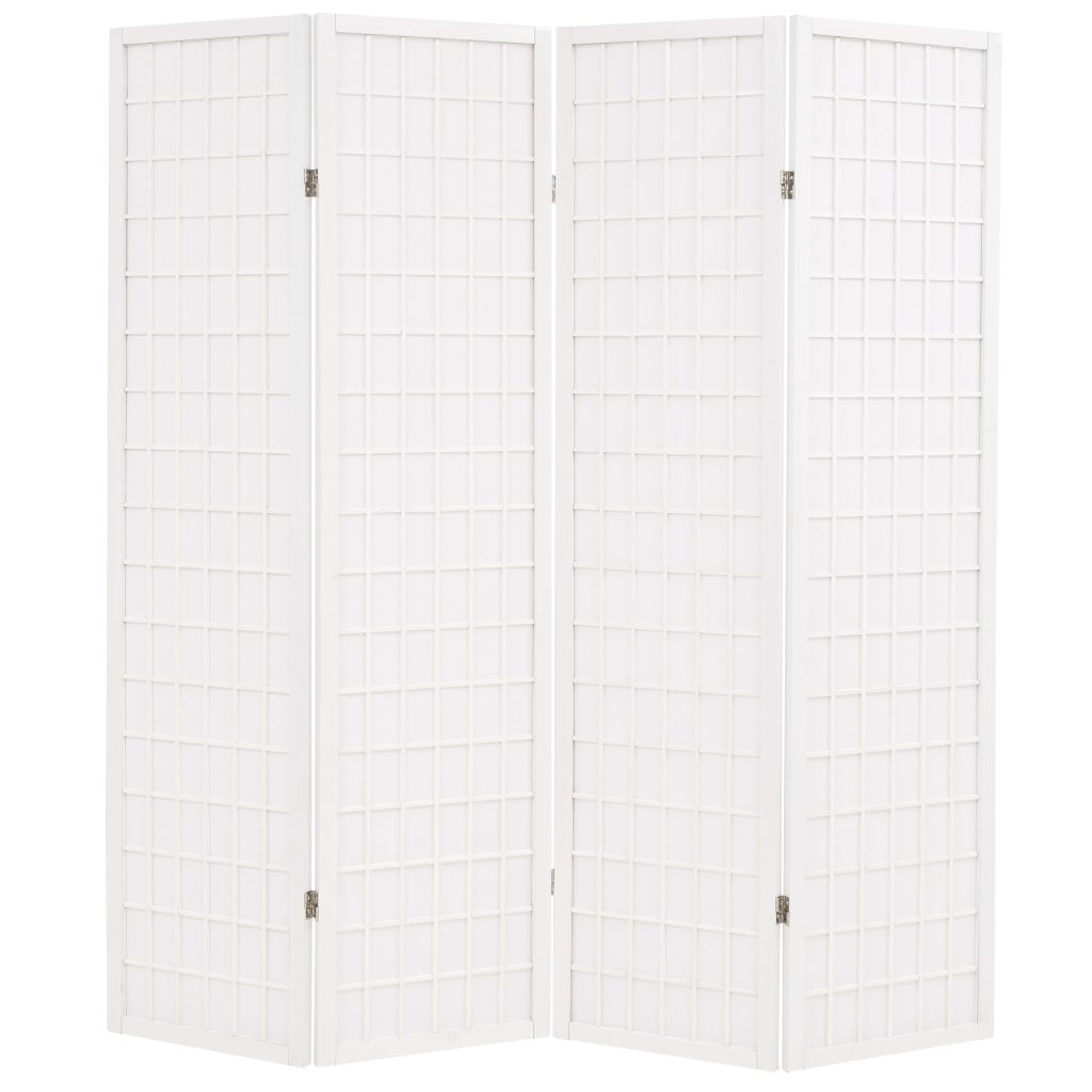 Zložljiv 4-delni paravan japonski stil 160x170 cm bele barve