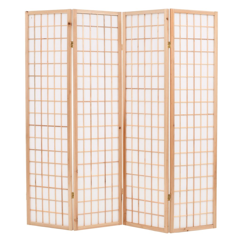 Zložljiv 4-delni paravan japonski stil 160x170 cm naravne barve