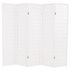 Zložljiv 5-delni paravan japonski stil 200x170 cm bele barve