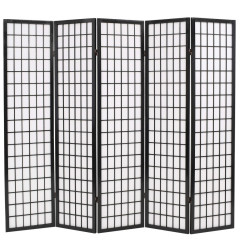 Zložljiv 5-delni paravan japonski stil 200x170 cm črne barve
