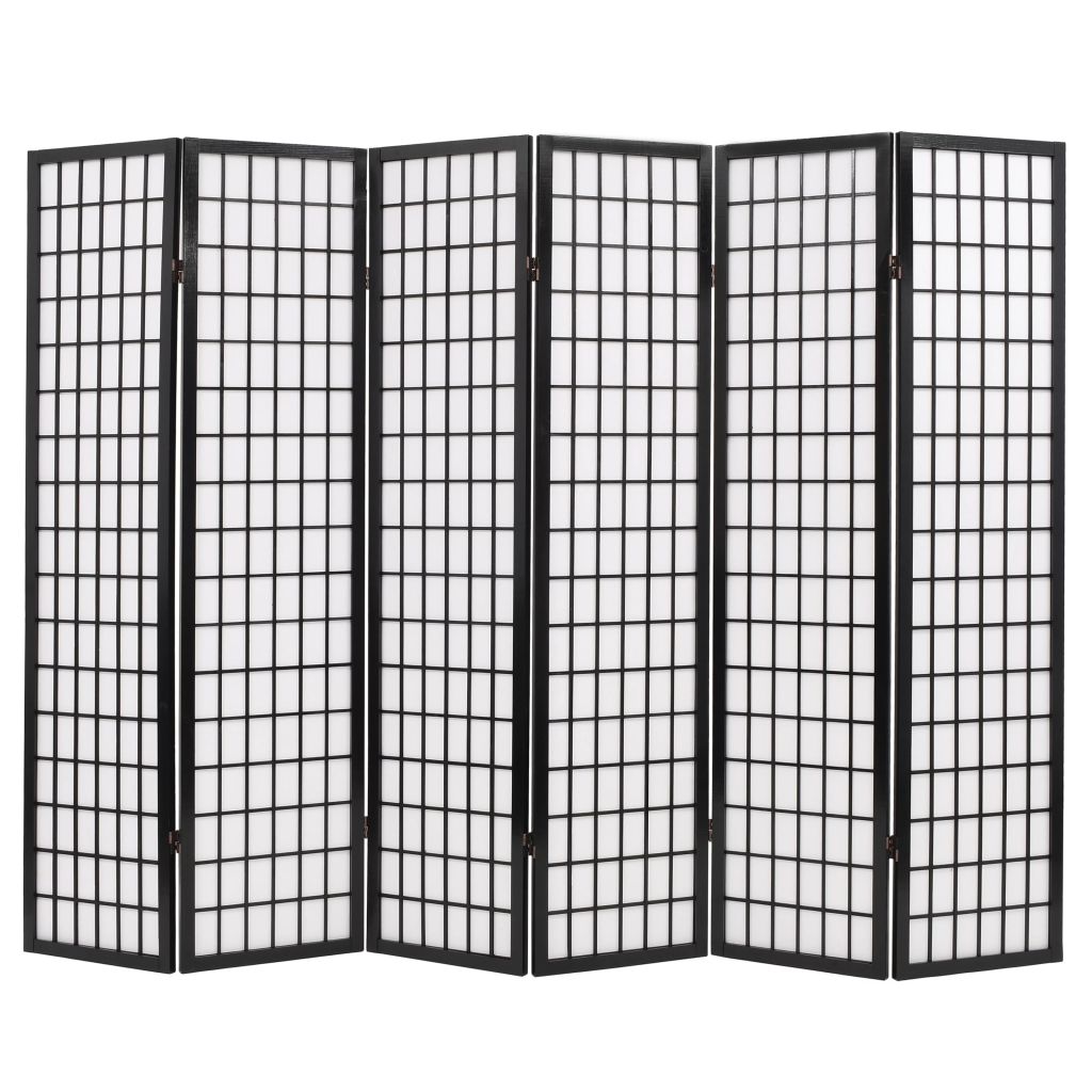 Zložljiv 6-delni paravan japonski stil 240x170 cm črne barve