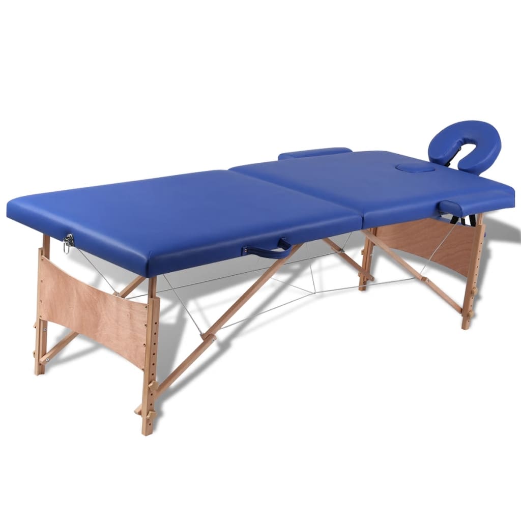 Zložljiva masažna miza 2 coni z lesenim okvirjem modra